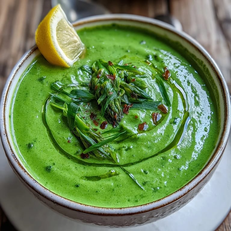 Save Embrace a nutrient-dense boost with this Big Green Immunity-Boosting Vegetable Soup. This vibrant, creamy bowl is packed with wholesome ingredients like spinach, asparagus, and broccoli, perfectly blended with cashews to create a silky texture that is both comforting and revitalizing.