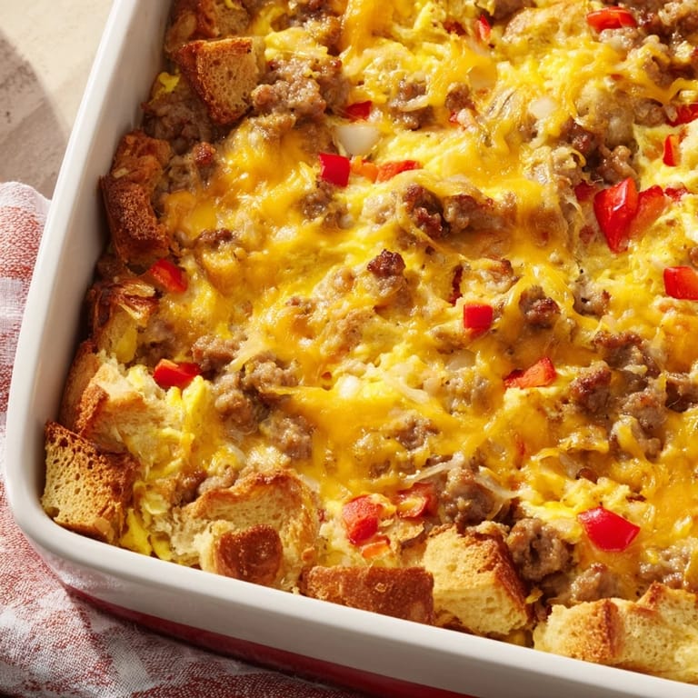Save The smell of sausage cooking in butter always pulls me into the kitchen, no matter what I am doing. My aunt used to make this casserole every Christmas morning, and the entire house would wake up to the most incredible aroma. She never measured anything, just dumped ingredients into her favorite chipped baking dish, and somehow it always turned out perfect. I have tried to recreate that magic ever since, watching the bread transform into golden custard in the oven.