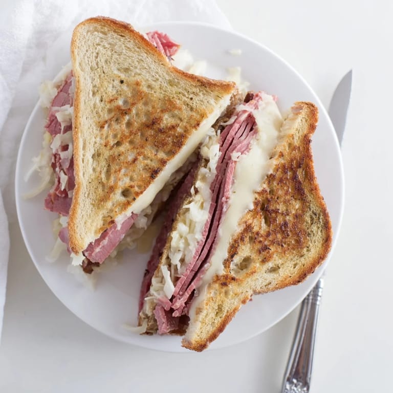 A traditional Reuben requires specific ingredients: corned beef, Swiss cheese, sauerkraut, and Russian dressing on rye bread, all grilled until golden and melty.