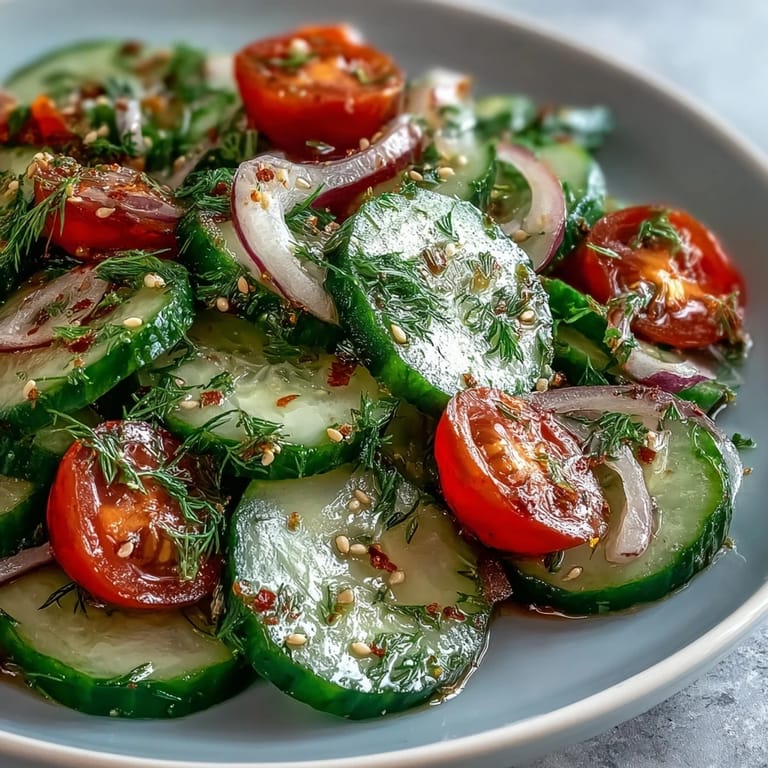 Save I threw this salad together on a Tuesday afternoon when the heat made everything feel heavy, and I needed something that felt like biting into water. The cucumbers were cold from the crisper, the vinegar sharp enough to wake me up, and within twenty minutes I had a bowl that tasted like summer even though I was standing in my kitchen in socks. It became my reset dish, the thing I make when I need to feel light again. Sometimes the simplest combinations are the ones that stick.