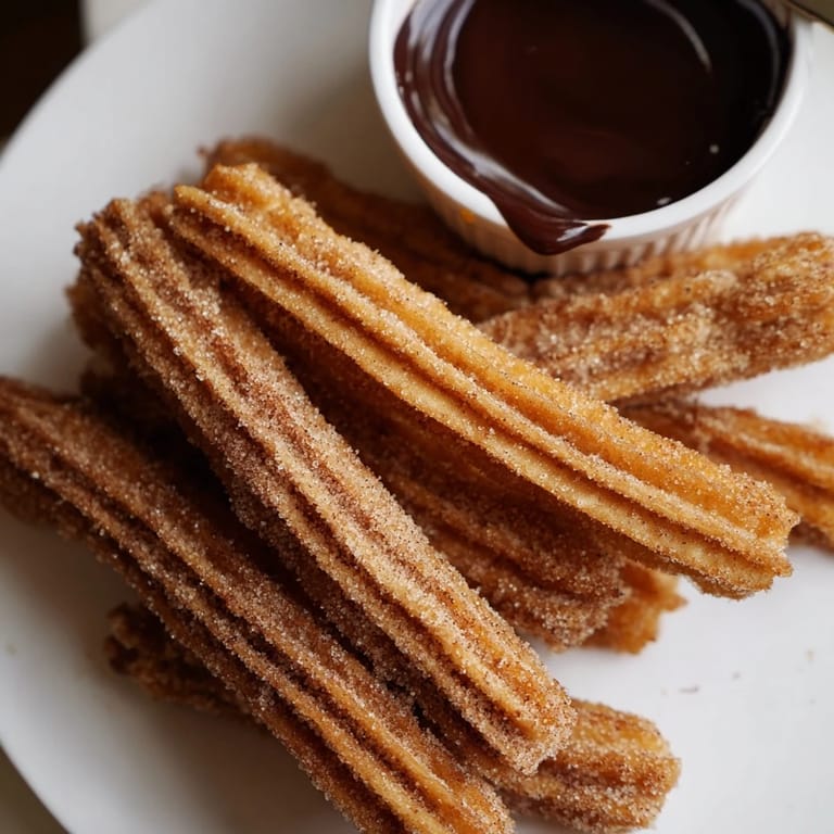 Make the chocolate sauce first and keep it warm in a double boiler or the microwave at low power. The moment those churros hit the sugar coating, you want the sauce ready and waiting because every minute of cooling is a minute lost from perfect texture. I set up my coating station before I even turn on the oil—shallow dish mixed and ready, paper towels laid out, tongs within reach.