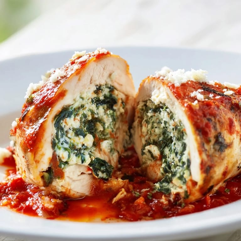Swap the spinach for chopped kale or even sun-dried tomatoes if you want a different flavor profile. Part-skim ricotta lightens the filling without sacrificing too much creaminess, and you can add a pinch of red pepper flakes to the sauce if you like a little heat. I've also used chicken thighs when breasts weren't available, just adjust the cooking time and watch the temperature.